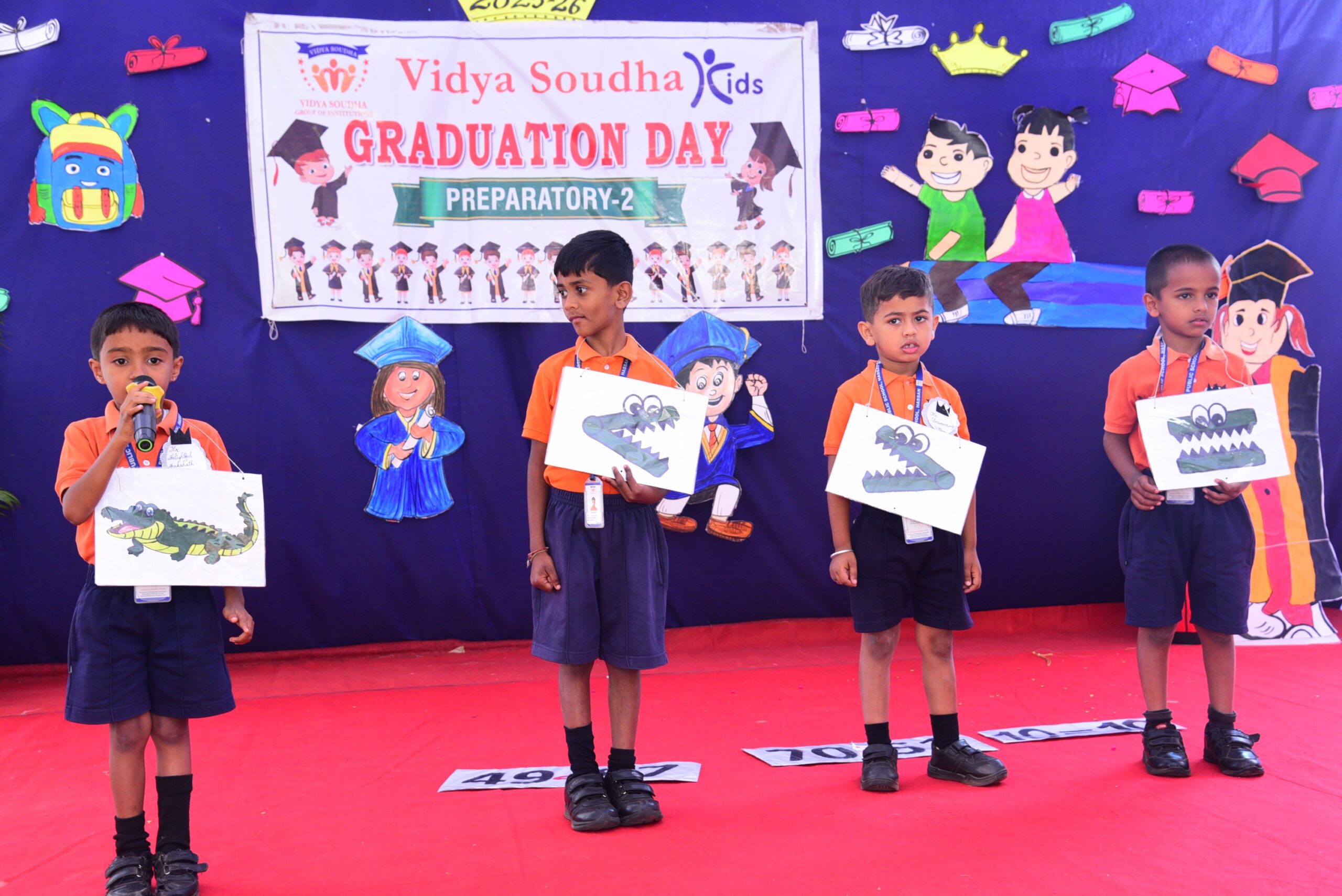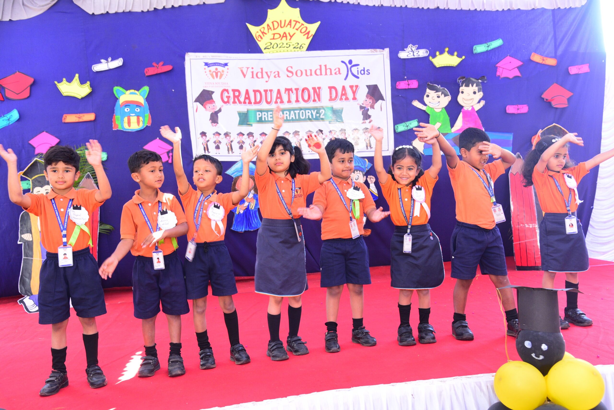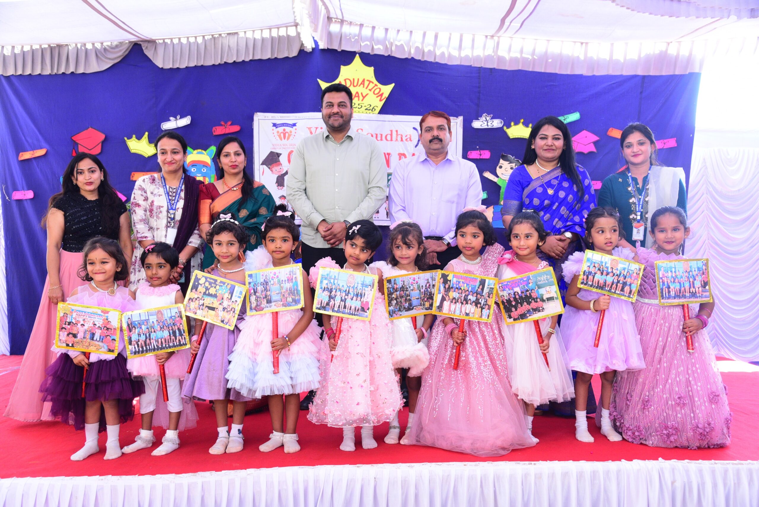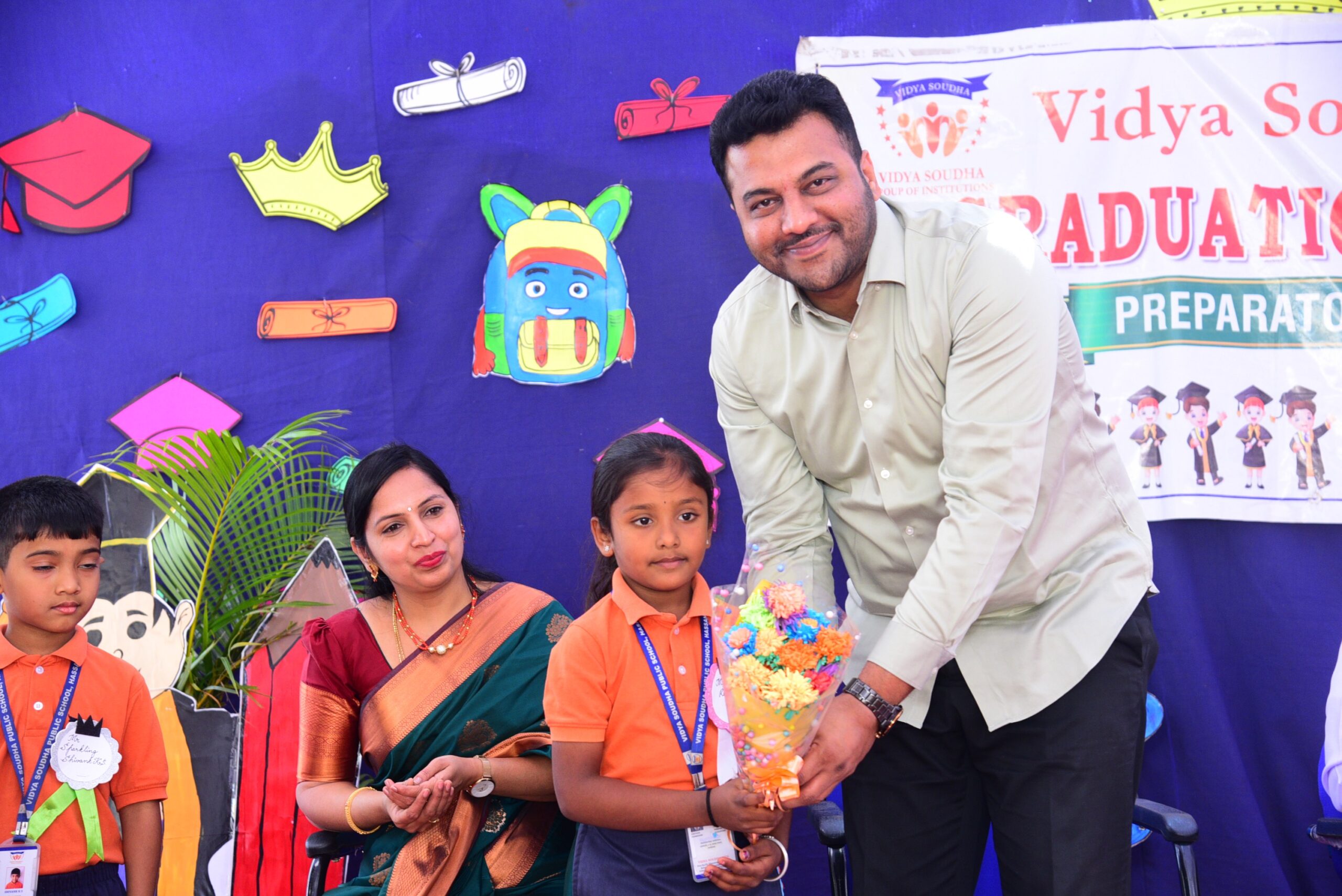 The program was graced by our esteemed Executive Director, Mr. Pavan Manjegowda Sir, as the Chief Guest. He was accompanied by the Principal of Vidya Soudha Public School, Mr. Parmesh Halgeri Sir; Centre Head of Vidya Soudha Kids K.R Puram, Mrs. Salma Ma’am; Centre Head of Vidya Soudha Kids, Mrs. Poornima T.D; Mrs. Shalini M.C, Coordinator of Vidya Soudha Public School Growth Center KIADB; and Lead Teacher Ms. Ashwini P. Their gracious presence added pride and honor to the occasion.