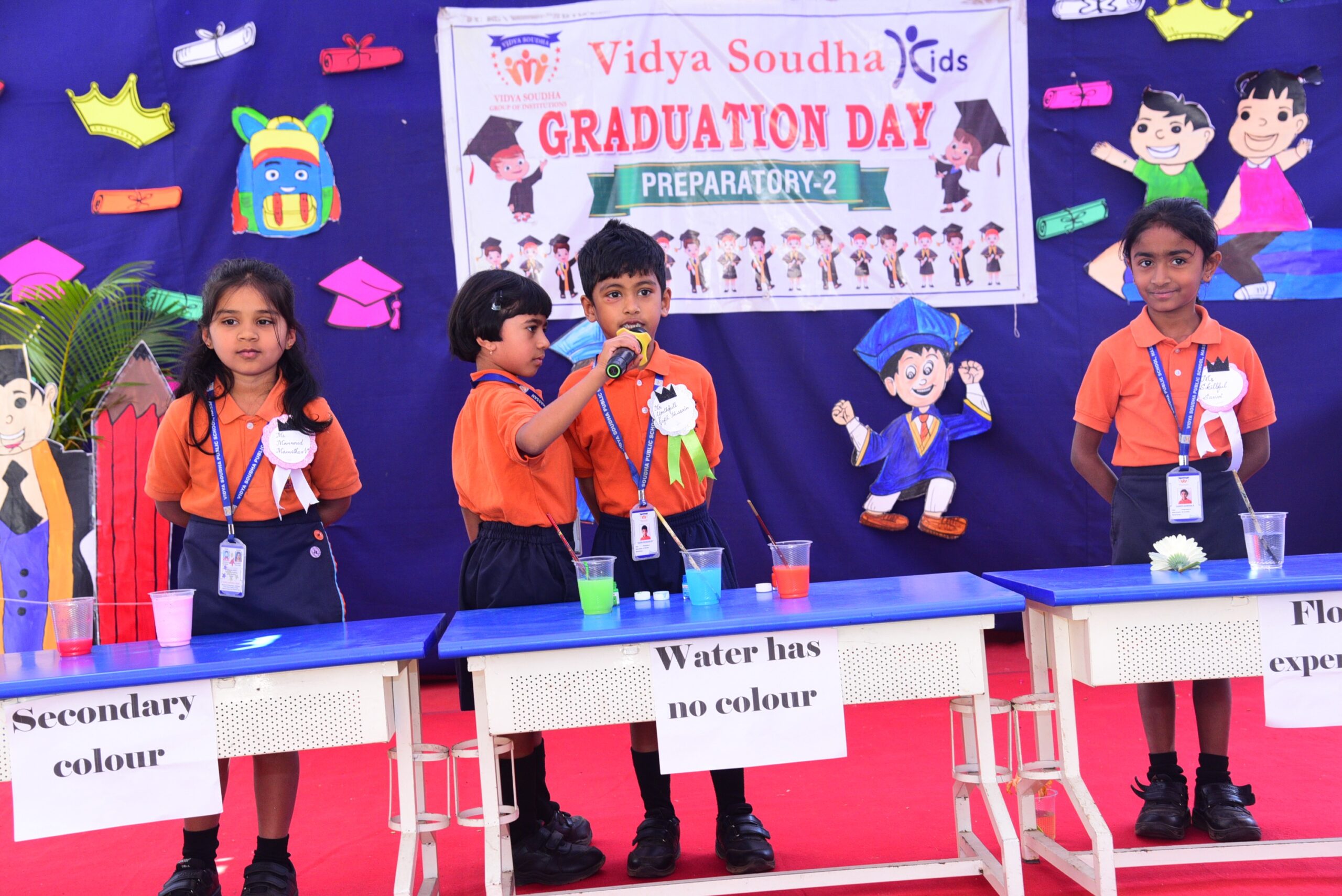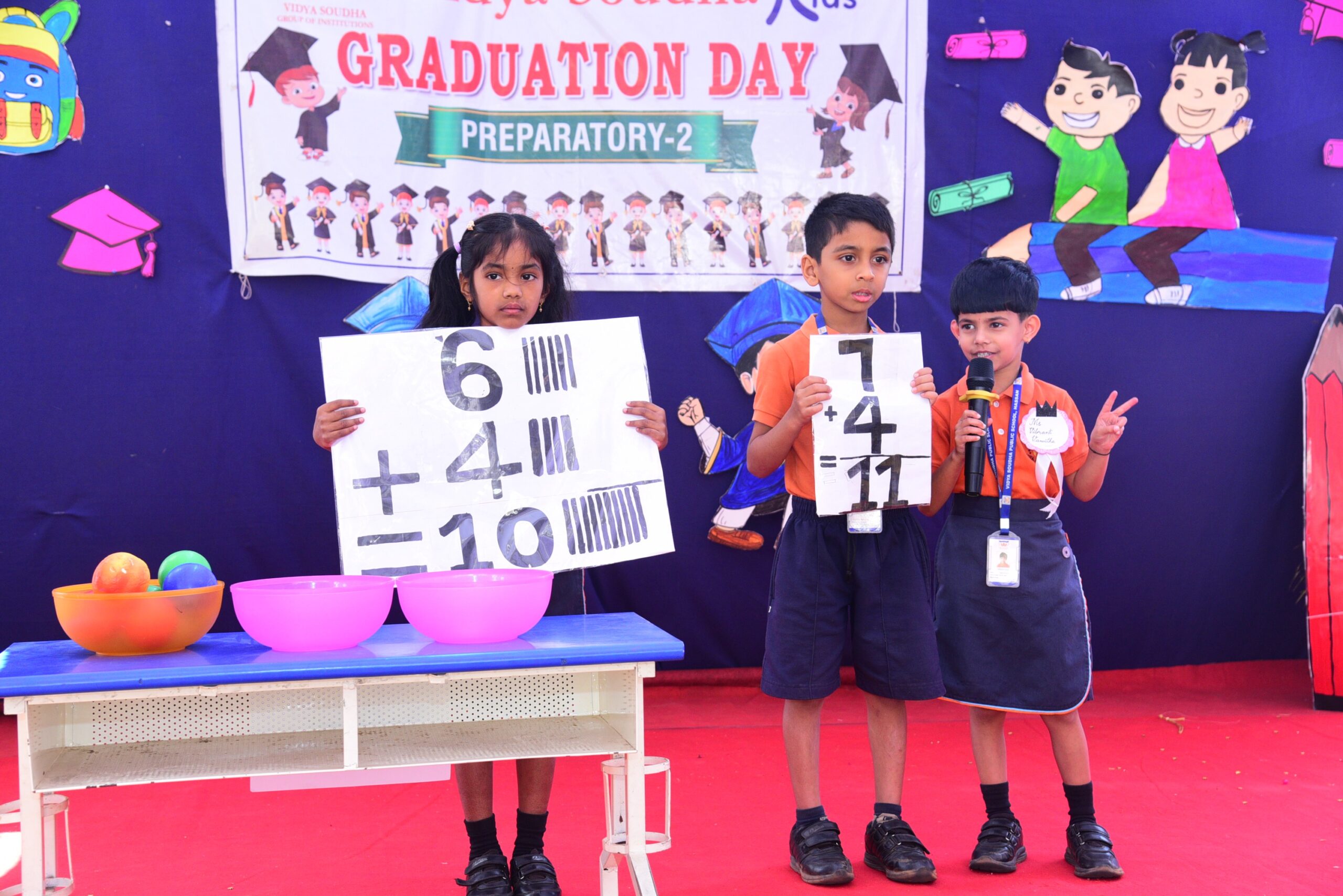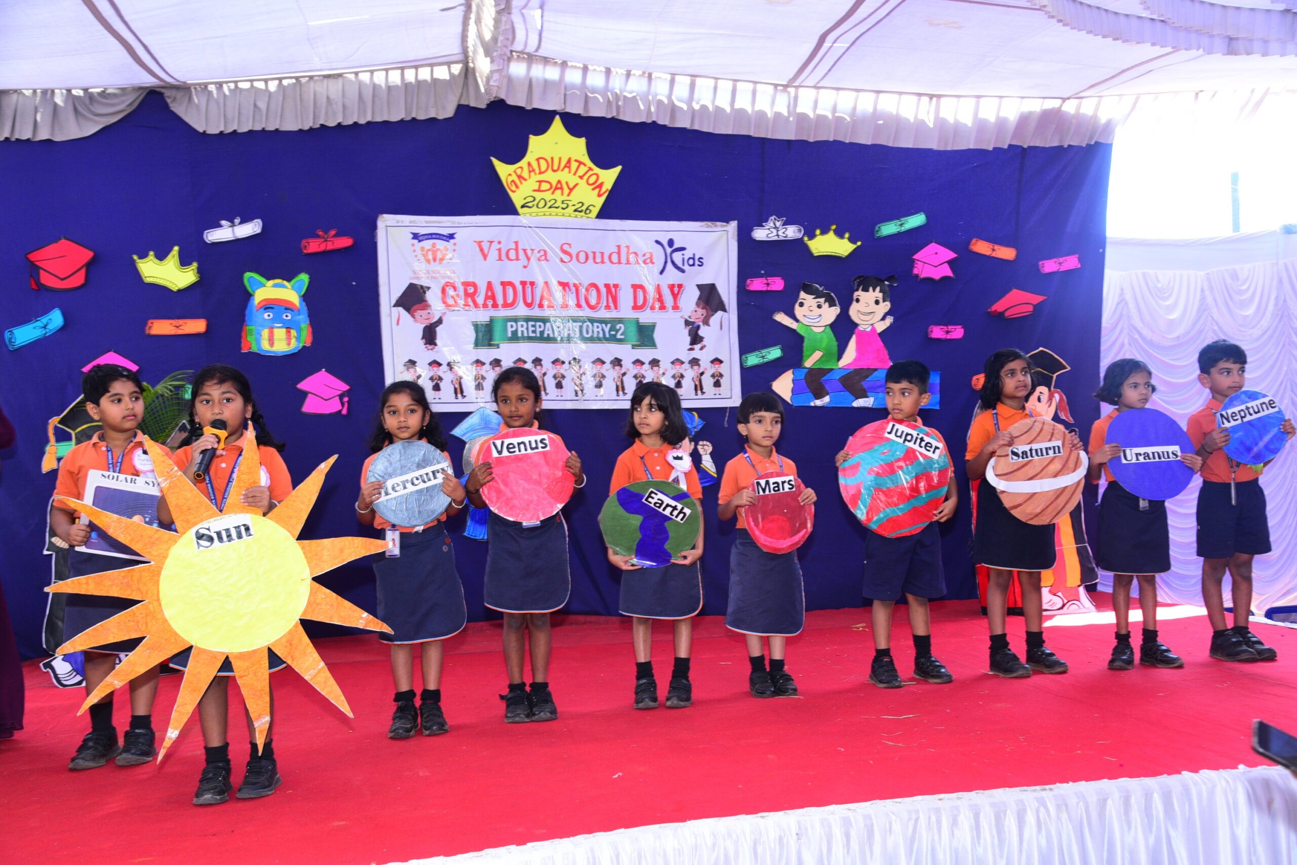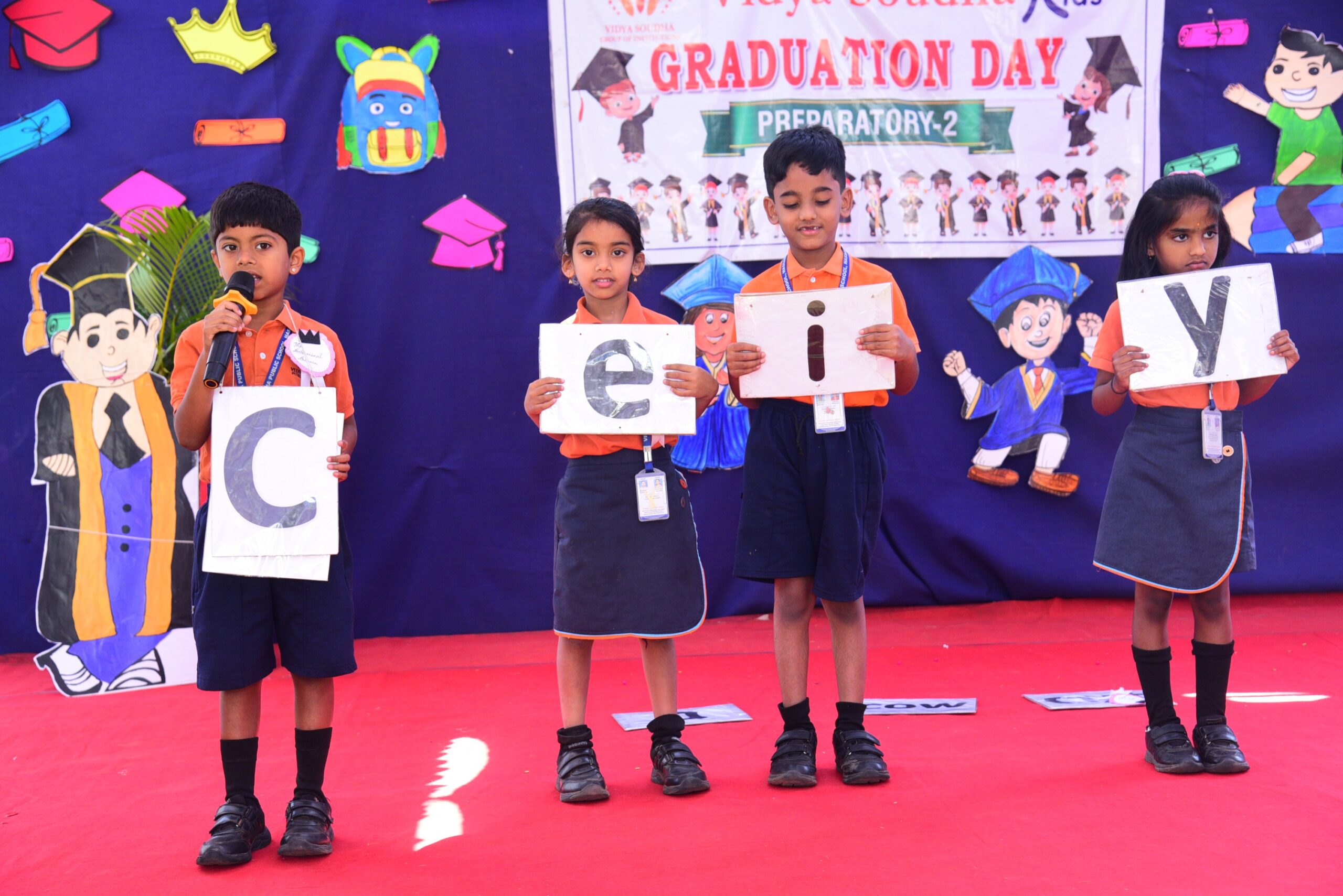 The program was graced by our esteemed Executive Director, Mr. Pavan Manjegowda Sir, as the Chief Guest. He was accompanied by the Principal of Vidya Soudha Public School, Mr. Parmesh Halgeri Sir; Centre Head of Vidya Soudha Kids K.R Puram, Mrs. Salma Ma’am; Centre Head of Vidya Soudha Kids, Mrs. Poornima T.D; Mrs. Shalini M.C, Coordinator of Vidya Soudha Public School Growth Center KIADB; and Lead Teacher Ms. Ashwini P. Their gracious presence added pride and honor to the occasion.