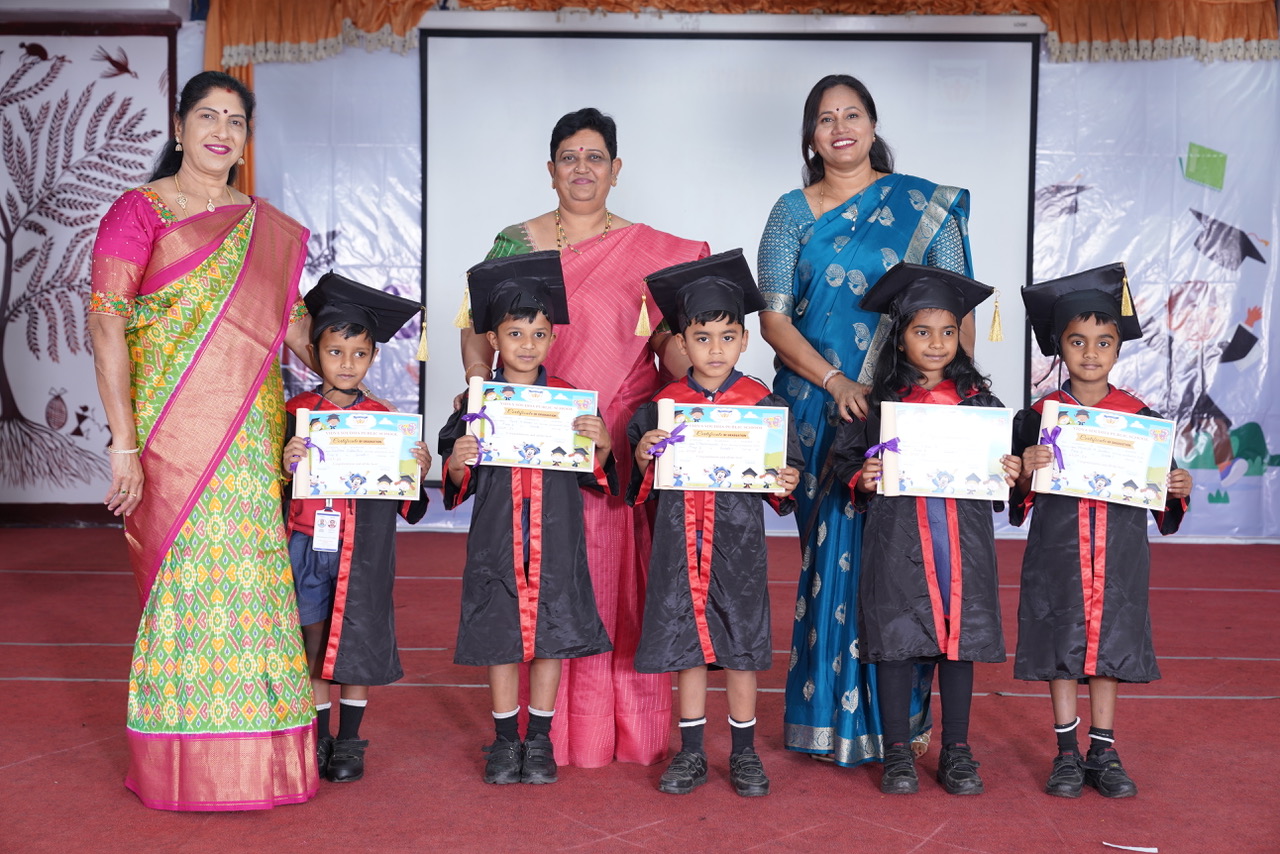 The ceremony was graced by Mrs. Sunitha Sharma, Director of Our Little Wonderz, as the Chief Guest, Mrs. Sudha Manje Gowda, Trustee Member of VSGI, as the Guest of Honour, and Senior Principal Mrs. Padmashree M. Their inspiring words motivated the young graduates.