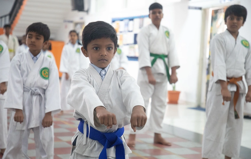 Our sports arena includes facilities for Cricket, Football, Basketball, Skating, Tennis, Swimming, and Athletics. Yoga and Karate are part of the regular curriculum, helping students build strength, focus, and resilience.