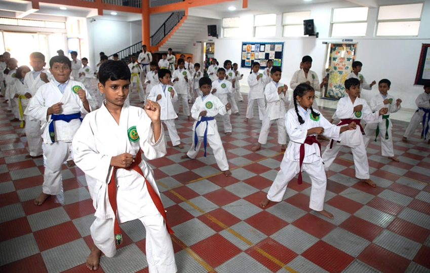 The school offers excellent sports facilities that encourage physical fitness, discipline, and teamwork. Students are trained in a wide range of sports including cricket, football, basketball, tennis, skating, swimming, and athletics within a well-equipped sports arena. In addition to these, Yoga and Karate are integrated into the regular curriculum to promote physical strength, mental focus, self-discipline, and overall well-being.